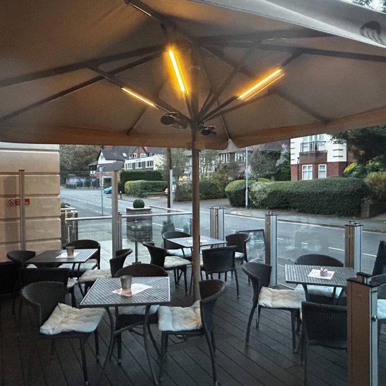 coffee within our cozy indoor seating areas or our delightful "dog-friendly" outdoor decking space . Al-fresco dining all year round protected by large umbrellas and wind-proof glass ballustrades.